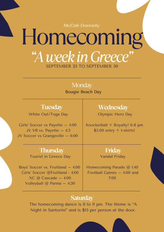 The homecoming parade will leave MDHS at 1:30 pm and make its way downtown along Lake Street. We'll go through the light at Deinhard, turn left on Jacob and then left again on Commerce to get back on Deinhard. The parade will end at Barbara Morgan Elementary.